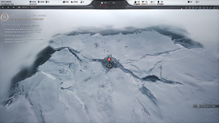 کاوش و اکتشاف در جهان بازی یکی از ستونهای اصلی گیم پلی است! به هر حال شما منابع بسیار محدودی در سطح شهر دارید و مطمئناً حتی اگر عادلترین، داناترین و بهترین رهبر ممکن هم باشید نمیتوانید از پس نیازمندی مردم شهر بربیایید. پس باید اینجا تیمهای اکتشافی را با تجهیزات، آذوقه و سوخت مناسب برای اکتشاف روانه جهان گسترده بازی کنید. هسته اصلی بازی همان شهر نیو لندن است اما میتوانید با اکتشاف نقاط بیشتری را در قالب مستعمره تحت سیطره خود قرار دهید. اما این مورد روی کاغذ آسان است؛ هر مستعمره خودش نیازمند هزینههای متمادی و البته ساخت مسیرهای لجستیکی است که به شهر اصلی منتهی شود. خود پروسه پیدا کردن مستعمرهها کم کار سختی است. کوچکترین نقصی ممکن است به مرگ اعضا یا تجهیزات شما منجر شود.