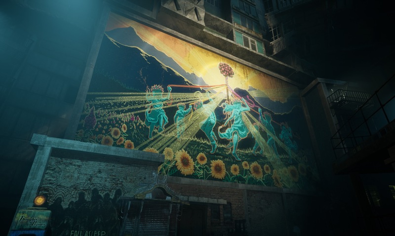 طراحان بازی از معماری بروتالیستی و صنعتی استفاده کردهاند تا حس خفقان را منتقل کنند. ساختمانهای عظیم سیمانی، کوچههای تنگ و تاریک و راهپلههایی که انگار پایانی ندارند. اما نبوغ طراحی مرحله زمانی مشخص میشود که «توهم» وارد گیمپلی میشود.